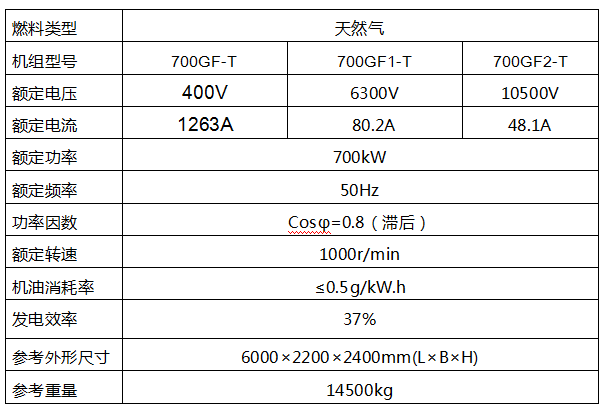 機組型號:700GF-T 700GF1-T 700GF2-T
